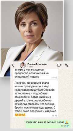 Уже много лет помогаю клиентам из России и СНГ инвестировать в недвижимость Дубая. Отбираю лишь надёжные проекты — около 15 % лучших предложений рынка, в которые вложила бы и свои средства.